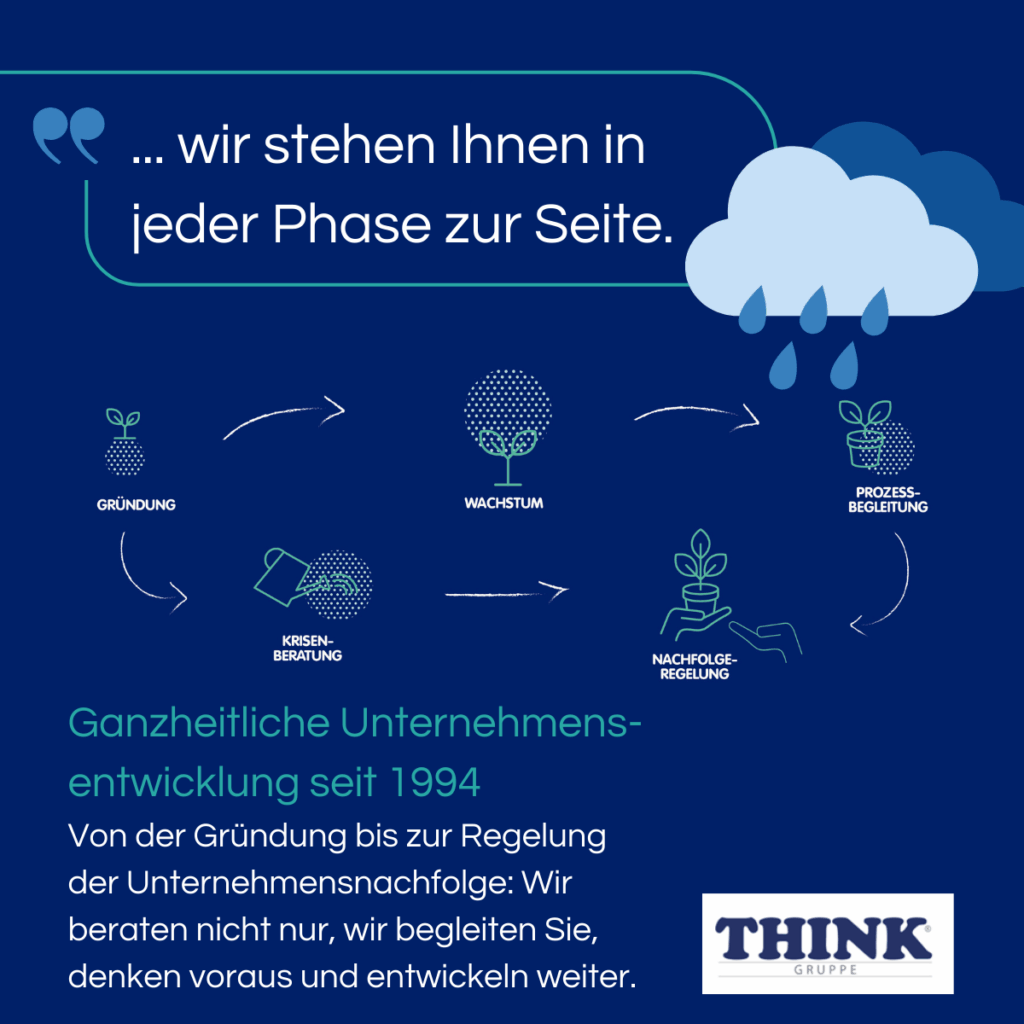 Schritt fรผr Schritt sind wir an Ihrer Seite (bei Bedarf in Kooperation mit unserem interdisziplinรคren Experten-Netzwerk) โ auch bei der Umsetzung von strategischen, operativen und finanzwirtschaftlichen Maรnahmen auf dem Weg in eine erfolgreiche Zukunft fรผr Sie und Ihr Unternehmen.